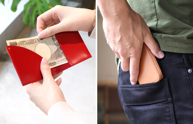 また、札入れと小銭入れを分けて使いたい方には、下記で紹介の「手のひら」との併用がおすすめです。