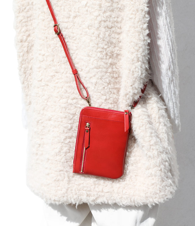内側の浅めに作られたファスナーポケットに小銭を入れればお財布ポシェットとしても利用が可能です。