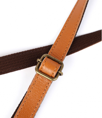 ショルダーベルトの表地にも本体と同じ牛革をあしらいました。同色のベルトは落ち着いた雰囲気を演出。